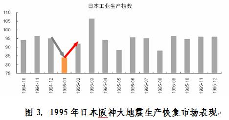 由此可見(jiàn),無(wú)論是整個(gè)國(guó)家經(jīng)濟(jì)結(jié)構(gòu),災(zāi)害初評(píng)估,或受災(zāi)地區(qū)在國(guó)民經(jīng)濟(jì)中地位和對(duì)國(guó)民經(jīng)濟(jì)實(shí)際影響等角度,此次地震(海嘯)帶來(lái)的影響可能要弱于1995年阪神地震。同時(shí),大家知道1995年阪神地震對(duì)生產(chǎn)的實(shí)際影響也是短期的,震后生產(chǎn)恢復(fù)非常迅速,并且某種程度上有效帶動(dòng)本國(guó)經(jīng)濟(jì)繁榮。為此,我們認(rèn)為此次地震危害對(duì)日本工業(yè)生產(chǎn)帶來(lái)的沖擊總體上較為有限。