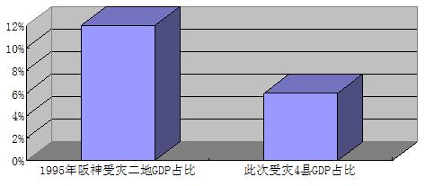 第三,受災(zāi)地區(qū)占本國(guó)經(jīng)濟(jì)總量比重不大。本次受災(zāi)4縣(主要4縣,分別為日本巖手縣、福島縣、宮城縣和茨城縣)占日本在6%左右,而1995年大阪和兵庫(kù)兩個(gè)最嚴(yán)重的受災(zāi)區(qū)(不包含其他波及地區(qū))占當(dāng)時(shí)日本全球GDP比重達(dá)12.4%。此次受災(zāi)地區(qū)4縣與1995年阪神地區(qū)在當(dāng)時(shí)日本經(jīng)濟(jì)中的地位無(wú)法相提并論。