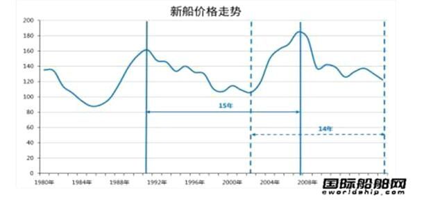 他評論稱,根據(jù)過去36年的船舶價格指數(shù)趨勢,經(jīng)過大約15年的一個周期會出現(xiàn)一個急劇增長,這一增長通常持續(xù)5至6年;因此,投資造船和航運業(yè)務(wù)需要在5年內(nèi)實現(xiàn)利潤,并在接下來的20年內(nèi)等待機遇。