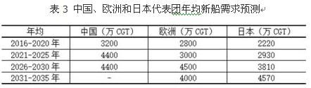總體市場來看,“十三五”期間,全球經(jīng)濟(jì)緩慢復(fù)蘇,海運(yùn)量增長乏力,新船需求將出現(xiàn)明顯萎縮。專家一致認(rèn)為,年均新船需求在3300萬修正總噸以下。不過,隨著世界經(jīng)濟(jì)復(fù)蘇,新船需求將有所回升。